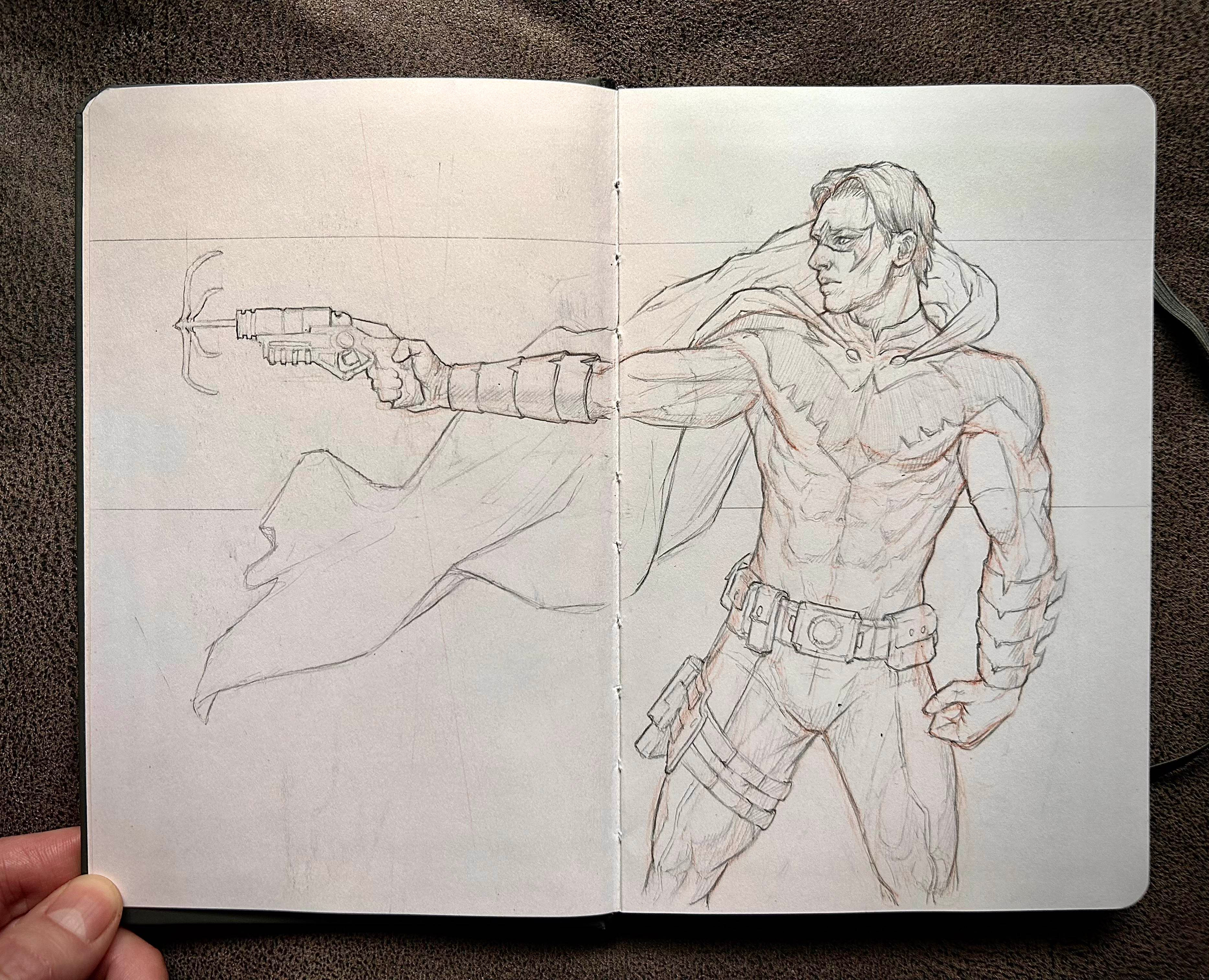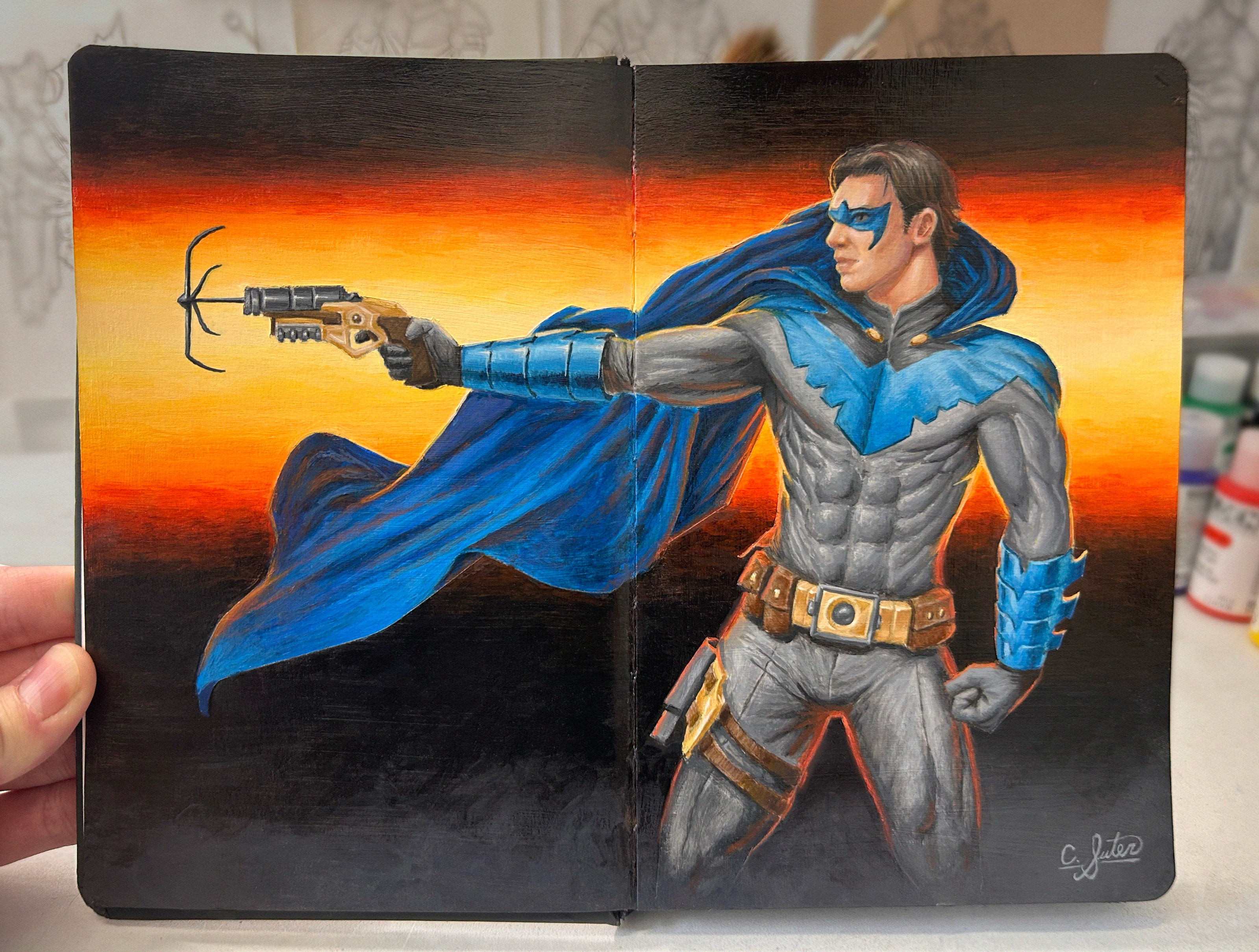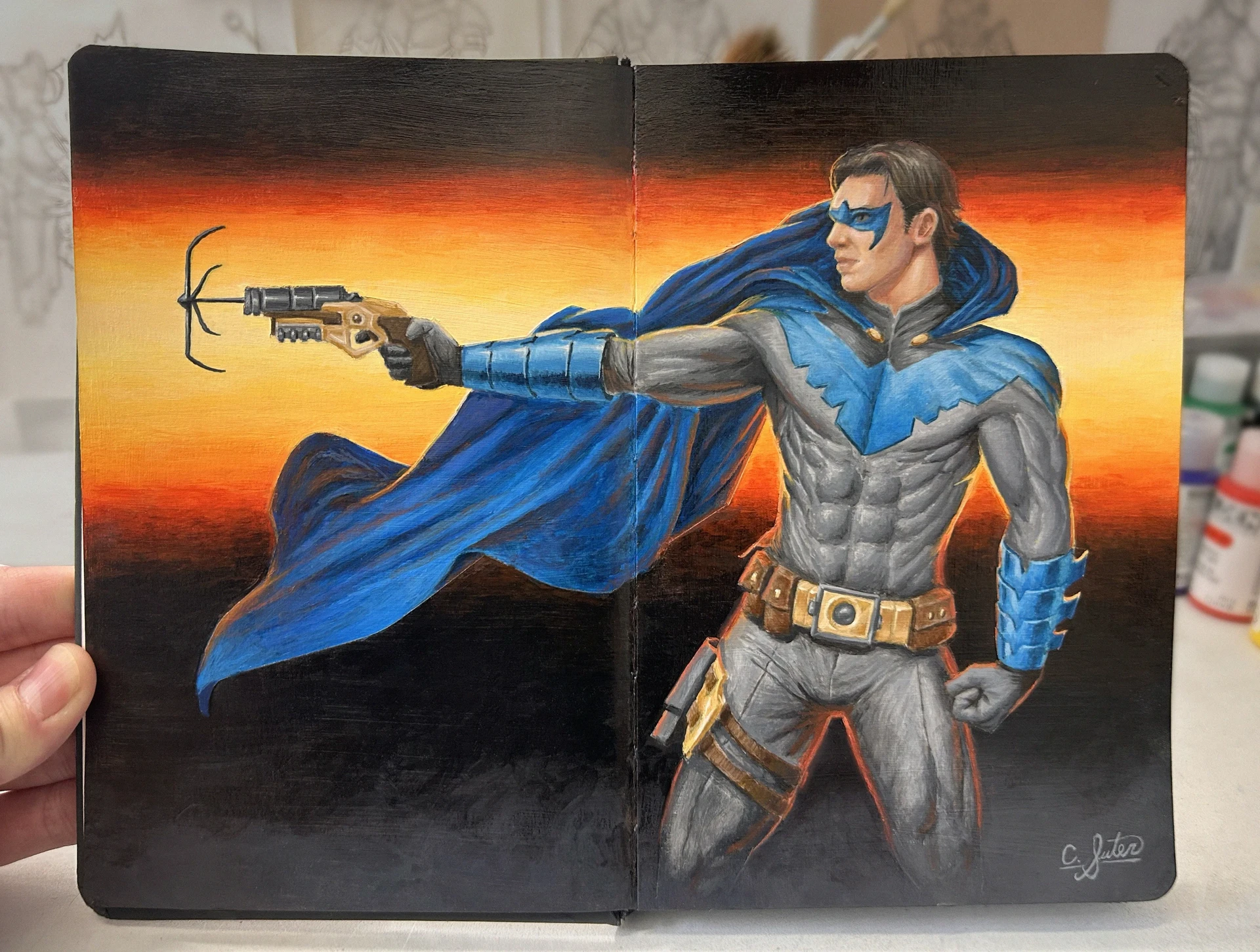 Paint sketch of Nightwing using fluid acrylics Mike Bakker